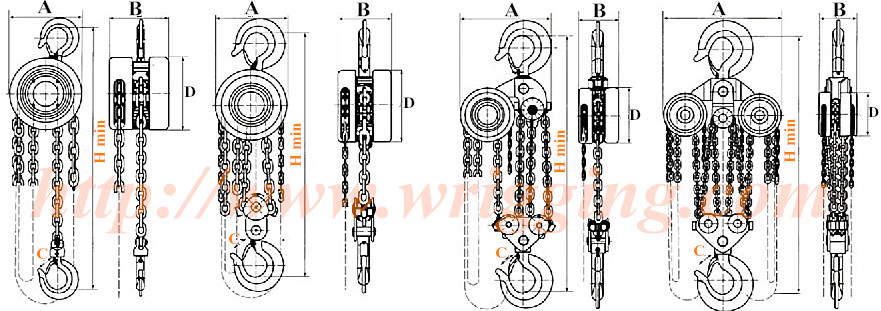 Wristrong manual/hand chain hoists are usually known as chain blocks and are designed for heavy duty lifting and materials handling operations. Chain blocks raise and lower loads by pulling on the hand chain. Chain blocks can be of single or double fall configurations depending on the capacity of the blocks. Wristrong chain blocks are produced in accordance with CE, EN 13157,ASME B30.16, AS 1418.2, etc, which could meet the different customers' requirements.
